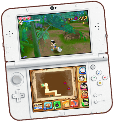無人島 ダンジョンに行けるよ。/敵の海賊 ミニゲームがはじまるよ。/釣りスポット いろいろなアイテムをゲットできるよ。/お宝スポット ひみつ道具をゲットできるよ。