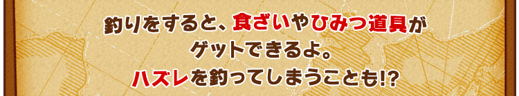 釣りをすると、食ざいやひみつ道具がゲットできるよ。ハズレを釣ってしまうことも!?