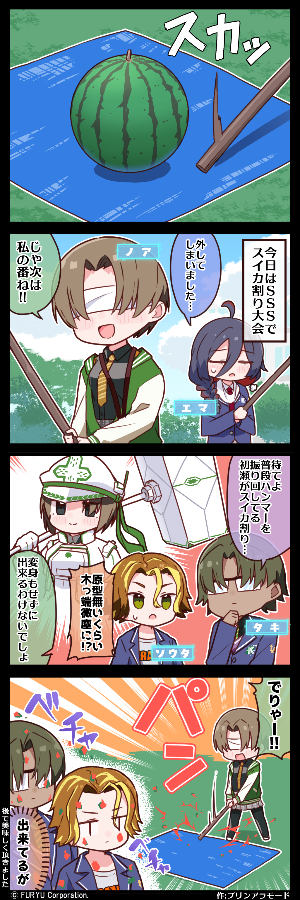 【4コマ漫画】第16話「スイカ割り大会🍉」